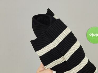Dzianinowy top w prążki z krótkim rękawem - Fason: dopasowany, elastyczny ribbed knit - Golf typu półgolf/stójka - Wzór: szerokie poziome pasy w kolorach czarnym, beżowym i kremowym - Rękawy do po...Asymetryczny sweter prążkowany w paski
