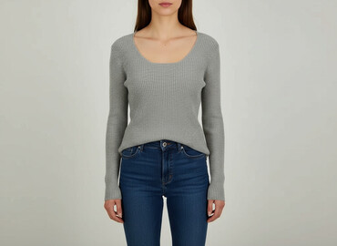 Uniwersalny, cienki sweter idealny do noszenia samodzielnie lub jako warstwa pod marynarkę czy kurtkę. Klasyczny kolor i pionowe prążki optycznie wysmuklają sylwetkę.