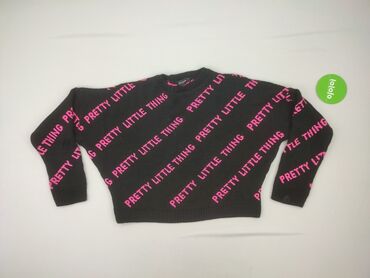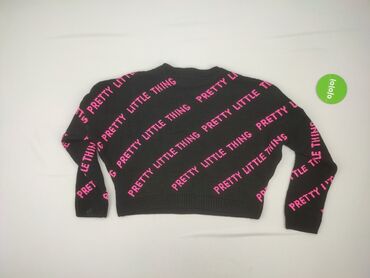 Czarny krótki sweter MODCCI, rozmiar M/L. - Fason: crop top, luźniejsza góra z dopasowanymi, prążkowanymi mankietami i stójką. - Wzór: geometryczny, beżowe linie i labiryntowe motywy na czarnym tl...