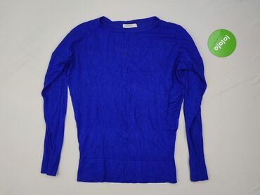 Damski sweter w kolorze niebieskim, idealny do codziennych stylizacji. Posiada okrągły dekolt i długie rękawy zakończone ściągaczami. Charakterystyczne prążkowane wykończenie dekoltu i mankietów do...