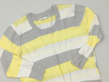 Sweter damski Sinsay, rozmiar S. - Fason: klasyczny, z okrągłym dekoltem - Długość rękawa: długi - Wzór: szerokie, melanżowe pasy w odcieniach bieli, czerni, szarości i niebieskiego - Dzianina: śr...