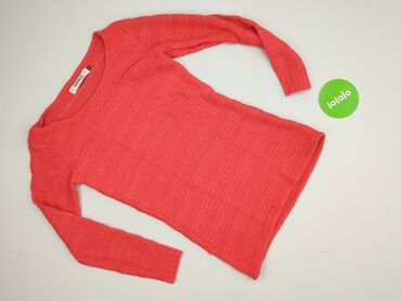 Ażurowy sweter damski w kolorze łososiowo‑różowym. - Fason: dłuższy, z dekoltem w serek, rękaw długi - Splot: ażurowy wzór w romby/kwadraty, dekoracyjne „okienka” - Ściągacze przy mankietach i na ...Stan: