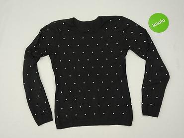 Damski sweter z połyskiem, rozmiar S - Fason: klasyczny pulower z okrągłym dekoltem, długi rękaw. - Kolor: czarny z drobną, granatowo-niebieską nitką dającą delikatny, wieczorowy połysk. - Detale:...