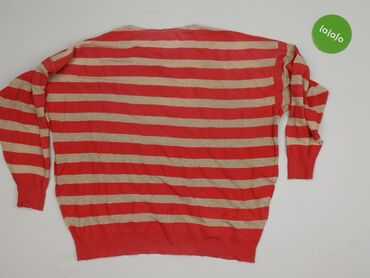 Ażurowy sweter damski w paski - Krój: luźny, z opuszczoną linią ramion, klasyczne ściągacze przy dekolcie, mankietach i dole - Wzór: pionowe pasy w kolorach czerwonym, granatowym i białym - Splot:...Stan: