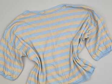 Sweter damski, niebieski, dzianinowy - Krój: luźny, z obniżoną linią ramion; lekko wydłużony tył - Dekolt: okrągły - Rękawy: długie z szerokimi, elastycznymi ściągaczami - Splot: wyraźna, struktur...