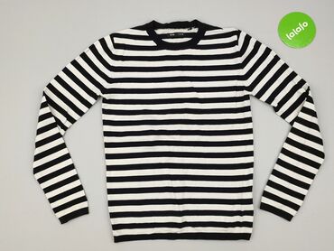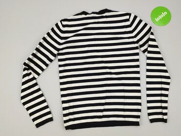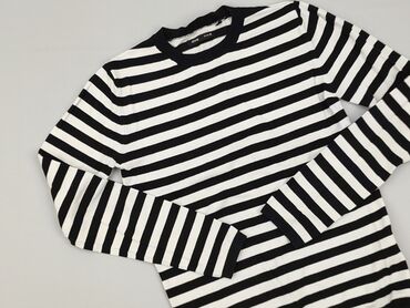 Sweter damski Sinsay, rozmiar S - Klasyczny wzór w poziome pasy: czarne i białe - Fason: dopasowany, z długim rękawem i okrągłym dekoltem (crew neck) - Dzianina prążkowana, elastyczna - Skład mate...
