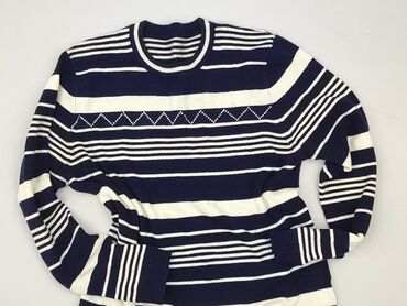 Sweter damski w prążki, rozmiar L - Krój: prosty, lekko wydłużony, z rozcięciami po bokach u dołu - Dekolt: okrągły - Rękaw: długi - Wzór: pionowe prążki z delikatną, lekko połyskującą nitką - Kol...