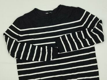 Sweter damski Sinsay, rozmiar S - Klasyczny wzór w poziome pasy: czarne i białe - Fason: dopasowany, z długim rękawem i okrągłym dekoltem (crew neck) - Dzianina prążkowana, elastyczna - Skład mate...