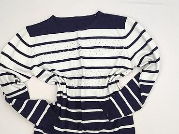 Sweter damski The Department w paski - Model: bluzka/sweter z dzianiny - Kolor: granatowo‑biały, poziome paski - Dekolt: łódka - Rękaw: 3/4 z szerszym mankietem - Dół: lekko ściągany, prosta linia...