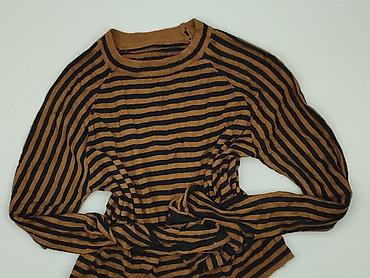 Dzianinowy sweter damski MKM New Fashion, rozmiar M. - Kolor: ciemny brąz z beżowymi poziomymi pasami z przodu - Fason: dopasowany, z szerokim, miękkim kołnierzem/opadającą stójką - Długie rękawy ...