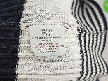 Sweter damski CROPP Knitwear - Rozmiar: M (metka) - Fason: lekko dopasowany, z długim rękawem - Wzór: poziome pasy – czarne i białe - Dekolt: łódkowy - Dzianina: miękka, elastyczna, przyjemna w do...