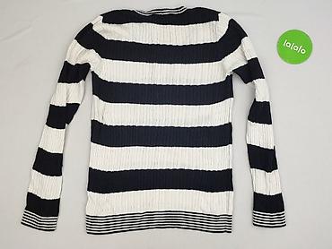 Damski sweter w paski, rozm. M (EU 42) - Fason: klasyczny sweter o średniej grubości, długość do bioder - Wzór/kolor: biało‑granatowe poziome paski (styl marynarski) - Dekolt: szeroki, łódkowy - R...