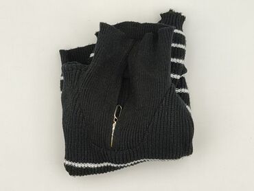 InnyCzarny sweter w białe poziome paski, dzianina o drobnym, sprężystym ściągu. Model z wysokim kołnierzem typu golf zapinanym z przodu na krótki zamek błyskawiczny. Rękawy długie, lekko bufiaste, zakończone ściągaczami; dół także ze ściągaczem, zapewnia dopasowanie do sylwetki. Klasyczny, marynistyczny wzór pasów na korpusie i rękawach. Miękka, ciepła przędza – idealna na chłodniejsze dni. Uniwersalny fason na co dzień, do jeansów i spódnic. Kolor: czarny z białymi paskami.