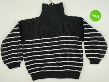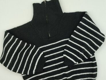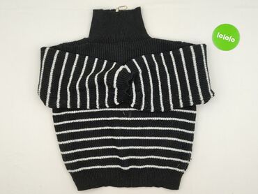 Czarny sweter w białe, poziome paski - Model: sweter z kołnierzykiem i dekoltem w kształcie litery V - Rękawy: długie, zakończone ściągaczami - Dół: ściągacz przy talii - Materiał: 100% akryl (met...