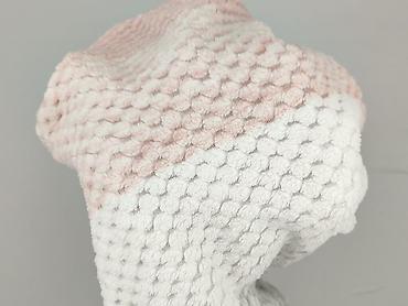 - Wzór/kolor: szerokie pasy w odcieniach pudrowego różu, bieli i jasnej szarości; fakturowana, „bąbelkowa” dzianina