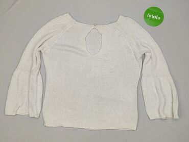 Damski sweter w kolorze białym, wykonany z dzianiny o wyraźnej, waflowej teksturze. Sweter ma długie rękawy zakończone ściągaczami. Dekolt jest szeroki, w stylu "boat neck", nadając swetrowi luźny,...