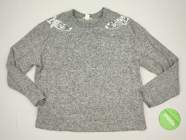 Sweter damski, dzianinowy, melanżowy szary - Krój: luźny, z obniżoną linią ramion; długość do bioder - Dekolt: w kształcie litery V z przodu - Rękawy: długie, zakończone ściągaczami - Dół: ściągac...