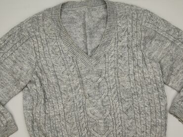 Sweter damski F&F - Krój: klasyczny sweter z dekoltem w serek, długie rękawy, ściągacze przy mankietach i dole. - Kolor/wzór: melanż biało‑szary. - Dzianina: grubszy, mięsisty splot o widocznej fa...