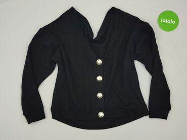 W serekCzarny, damski sweter/bluza z dekoltem w kształcie litery V i dekoracyjnymi, złotymi guzikami z przodu.