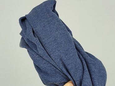 Sweter damski, dzianinowy, w kolorze denimowego niebieskiego. - Fason: luźny, oversize z obniżoną linią ramion - Dekolt: okrągły, prążkowany - Rękaw: długi - Dzianina: przewiewny, ażurowy splot o ...