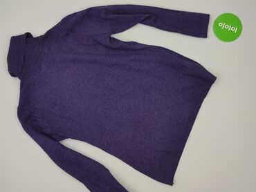 Fioletowy golf damski z długim rękawem - Krój: dopasowany, delikatne marszczenia przy dekolcie - Kołnierz: wysoki golf, miękko układający się - Rękawy: długie - Materiał: lekka, elastyczna dzianin...Stan: