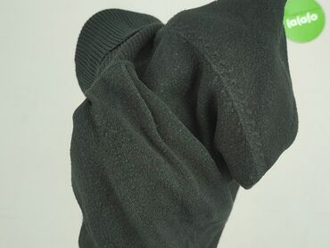 - Kołnierz: wysoki, szeroki golf z prążkowanej dzianiny