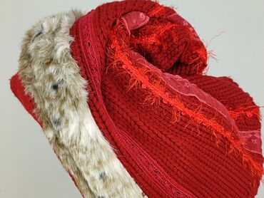 - Detale: dekoracyjne pionowe pasy z przodu – łączone tekstury w odcieniach czerwieni (koronka, frędzle) oraz wstawka z miękkiego, jasnego sztucznego futerka z cętkami