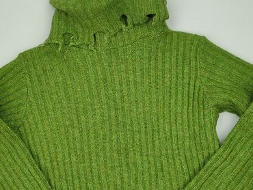 Zielony sweter damski z golfem półgolfem - Fason: dopasowany, prążkowany (szerokie pionowe prążki z przodu, z tyłu i na rękawach) - Długość rękawa: długi - Kołnierz: półgolf, elastyczny ściągacz -...Stan: