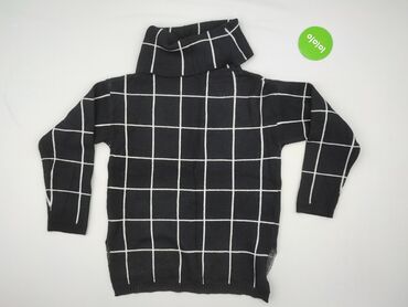 Czarny sweter damski z golfem - Fason: klasyczny, dopasowany, długi rękaw - Dekolt: golf/półgolf z prążkowanym ściągaczem - Wykończenia: prążkowane ściągacze przy mankietach i u dołu - Materiał: 7...Sweter damski z golfem, czarny w białą kratę