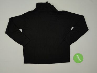 Czarny sweter damski z golfem - Krój: dopasowana góra z prążkowaną dzianiną, lekko rozszerzany dół - Rękawy: długie, zakończone ściągaczami - Dekolt: wysoki golf, miękki i elastyczny - Dzianina: p...Stan: