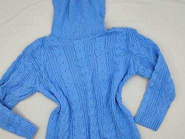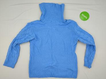 Sweter damski z golfem, błękitny - Fason: dłuższy, lekko dopasowany, dzianinowy - Kołnierz: obszerny golf z miękkiej, pętelkowej dzianiny (efekt frote) - Rękawy: długie, zakończone szerokimi manki...Stan: