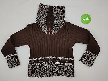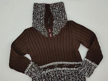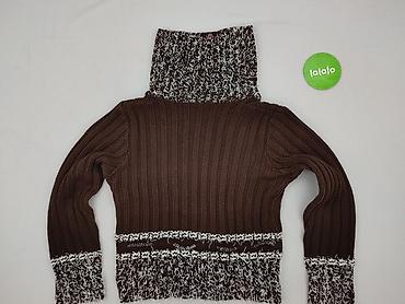 Damski sweter z golfem, brązowy z biało‑czarnymi wstawkami
