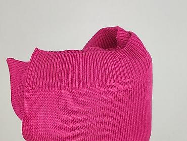 - Fason: sweter z wysokim, miękkim golfem przechodzącym w kaptur; długie rękawy; ściągacze przy mankietach i u dołu