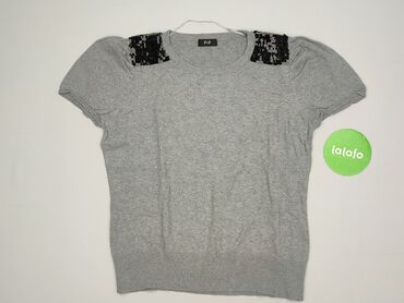 Sweterek damski F&F z krótkim rękawem - Kolor: jasnoszary/srebrzysty - Wykończenie: na całej powierzchni wszyte drobne cekiny, delikatny „puszek” przędzy - Krój: prosty, lekko skrócony, okrągły de...
