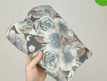 Damski sweter dzianinowy z pastelowym, akwarelowym nadrukiem kwiatowym. - Kolor bazowy: złamana biel/ecru - Wzór: wielokolorowe kwiaty i liście w odcieniach zieleni, różu, błękitu i fioletu - Krój...