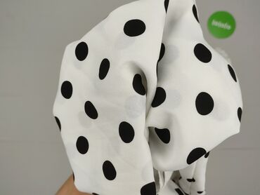 Biały szalik damski w czarne kropki, wykonany z lekkiego materiału. Szalik ma klasyczny wzór w groszki, z kropkami o różnej wielkości, co dodaje mu dynamiki. Jest to wszechstronny dodatek, który może być noszony na wiele sposobów, zarówno jako element codziennej stylizacji, jak i elegancki akcent. Materiał jest przyjemny w dotyku i zapewnia komfort noszenia. Idealny do noszenia przez cały rok, pasuje do wielu outfitów i okazji.