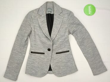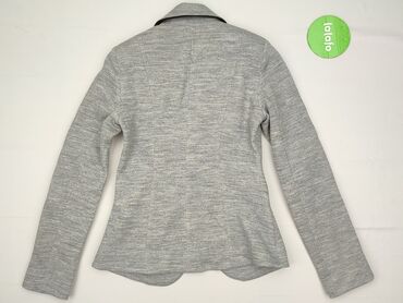 Marynarka damska H&M - Krój: taliowany, z klapami; długość do bioder, lekko krótsza, podkreślająca talię - Zapięcie: 2 guziki z przodu; mankiety z trzema guzikami - Kolor: szary melanż - Podszewka...