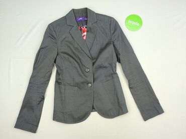 Żakiet damski MEXX - Klasyczny, taliowany krój z kołnierzem z klapami - Zapięcie na 3 guziki z przodu - Wzór: drobne paski/szpilki w odcieniach szarości - Kontrastowe lamowanie krawędzi (kołnierz,...Stan: