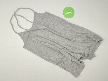 Szara damska bluzka bez rękawów - Krój: luźny, lekko oversize, z delikatnie zaokrąglonym dołem - Dekolt: łódkowy - Materiał: lekko lejąca, zwiewna tkanina (miękka, przyjemna w dotyku) - Detale: za...