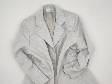 Szary damski żakiet Made in Italy - Klasyczny, taliowany krój z kołnierzem z klapami - Zapięcie na jeden guzik z przodu - Dwie przednie kieszenie z listewkami - Delikatnie melanżowa dzianina w odc...