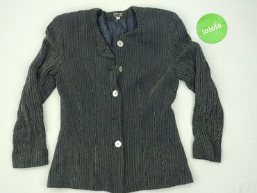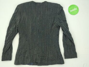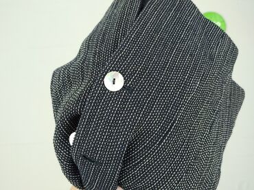 Szary damski żakiet w delikatne prążki - Klasyczny, taliowany fason - Zapięcie na 2 guziki z przodu - Klapy w kształcie V, fason marynarkowy - Długie rękawy - Dwie listwowe kieszenie z przodu (dek...