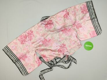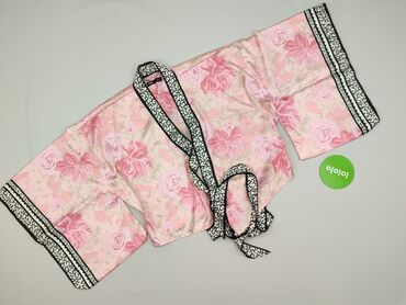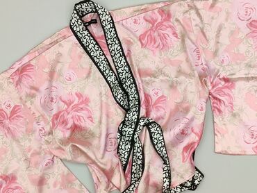 Jedwabisty szlafrok/kimono damskie - Kolor: pudrowy róż, z delikatnym połyskiem - Fason: luźny, otwarty przód bez zapięcia; długość do połowy uda; rękaw 3/4 o kroju kimono - Materiał: 100% poliest...