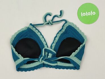 Szydełkowy top bikini – góra, damska - Kolor: turkusowy/niebieski - Materiał: 100% bawełna (metka na zdjęciu) - Krój: trójkątne miseczki wiązane na szyi i z tyłu - Wykończenie: dekoracyjne, ażurow...