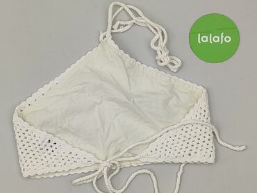 ModCloth – top/bikini top dla kobiety - Rozmiar: XL (na metce) - Kolor/wzór: biało‑niebieskie, wąskie paski - Krój: krótki top typu crop/bikini top z szeroką, stabilną gumką pod biustem - Ramiączk...Biały szydełkowy top bikini – Melissa Bentsen x NA-KD