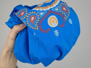 Bluzka damska w kolorze jasnego błękitu. - Krój: luźny T‑shirt z krótkim rękawem typu kimono, okrągły dekolt. - Dół delikatnie zaokrąglony z przodu i z tyłu. - Materiał: lekki, gładki, miękko ukła...