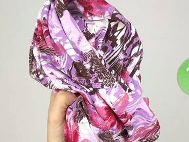 - Wzór: intensywny, kwiatowo‑abstrakcyjny; odcienie fioletu, różu, bieli i brązu