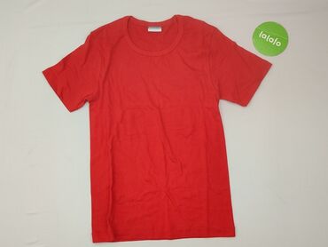 Damska koszulka T-shirt, czerwony kolor. - Krój: klasyczny, prosta linia, krótkie rękawy - Dekolt: okrągły ze ściągaczem - Materiał: miękka, lekka dzianina bawełniana z domieszką (przyjemna w doty...Stan: