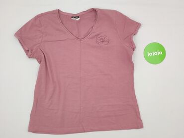 Różowy t‑shirt damski - Krój: klasyczny, z okrągłym dekoltem - Rozmiar z metki: XXL (WOMEN) - Krótki rękaw - Delikatna, jasnoróżowa kolorystyka - Ozdobne przeszycie/lamówka na zakończeniu rękawów ...