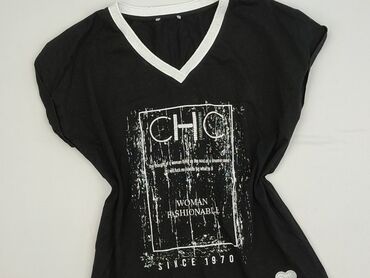 Czarna koszulka damska z nadrukiem - Marka: Niara (metka widoczna na zdjęciu) - Rozmiar z metki: XL / 42 - Fason: luźny T‑shirt z krótkim rękawem typu kimono - Dekolt: okrągły - Kolor: czarny - Na...