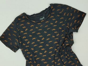 Koszulka damska w kolorze khaki, ozdobiona czarnym wzorem w panterkę. Charakteryzuje się krótkimi rękawami, okrągłym dekoltem i luźnym krojem, co zapewnia komfort noszenia. Idealna do casualowych s...Stan: